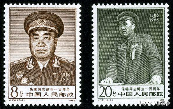 最后一个图的三个四方联,左边两个是一套,是1986年发行的J134朱德同志诞生一百周年,单套在30元左右,四方联带边纸贵一些,130元左右。
