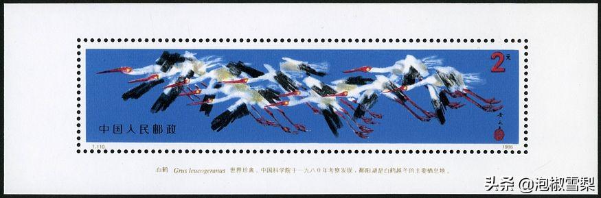和平年下边看到一枚小型张,是1986年发行的T110白鹤小型张,发行量不大,但价格不高,现在最新的成交价格在25元左右。
