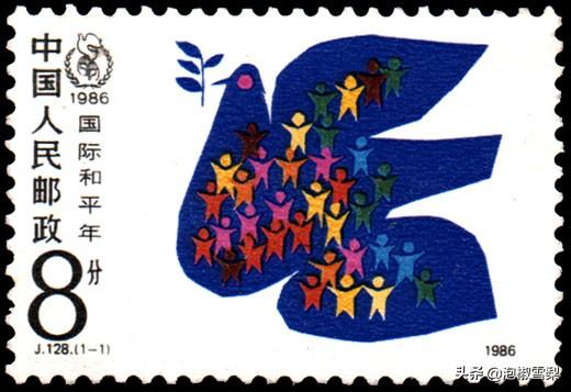 第二图上的八方联是1986年发行的J128,国际和平年,单枚成交价格1元左右,8方联也就10元多一些。