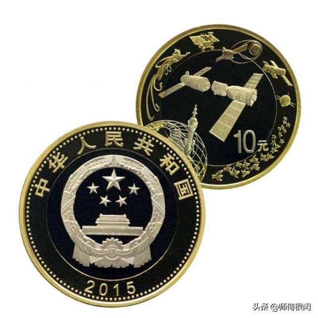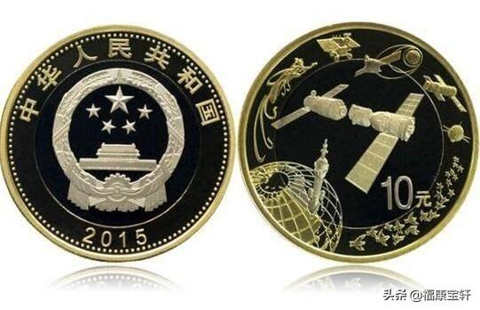 中国航天纪念币,面值10元,直径为27mm,采用双色铜合金制作,总发行量为1亿。由于是航天科技系列的龙头币,市场虽经波折,但表现仍旧不错。