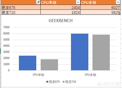 CPU性能部分骁龙675更强,单核部分可以领先骁龙710 CPU30%左右,多核心性能二者差距不大。