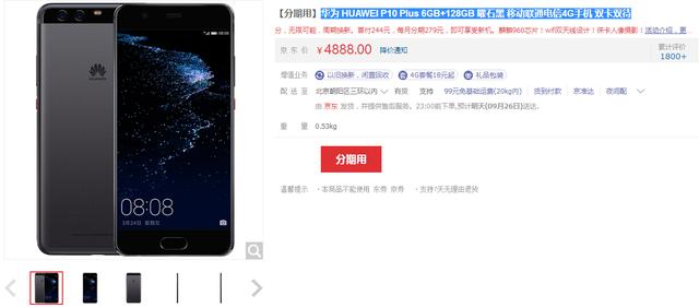 推荐二、华为 HUAWEI P10 Plus 6GB+128GB 曜石黑 移动联通电信4G手机 双卡双待