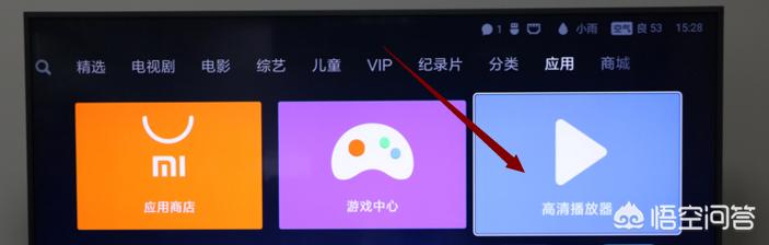 第二步:将U盘插入到小米电视的USB接口上面,系统会自动检测出外接存储设备,也可以在应用里打开“高清播放器”,依然可以看到U盘设备;