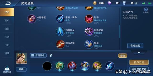 出装的话顺风就攻速鞋黑切无尽破晓逐日复活甲,后期可以把黑切换成电刀或者影刃,逐日也可以换魔女,不详之类的,攻速鞋也可以换布甲鞋或者韧性鞋,对面肉多的也可以把黑切换成末世!