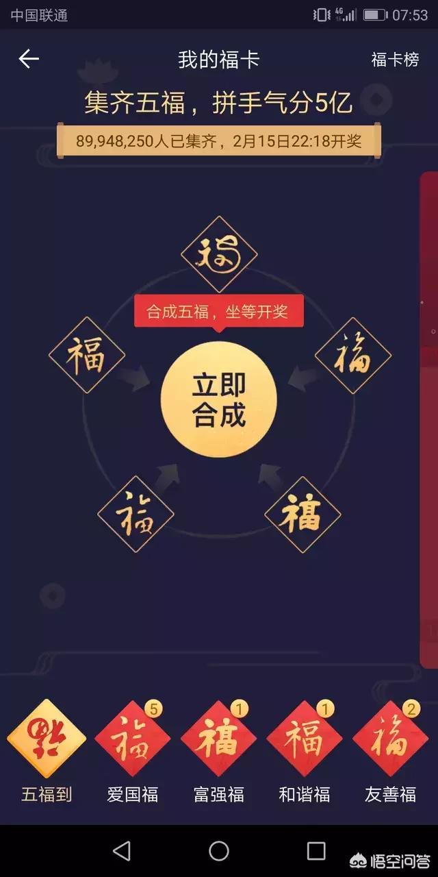 其实,集福今年难度不大,还是可以继续扫福字,扫手势,每天收金蛋,还有可以通过和亲戚朋友互动交换福字。如果你是钻石会员,还会有三张万能福。五福我第二天就聚齐了,其他都送亲朋好友了,大家同乐乐多好!