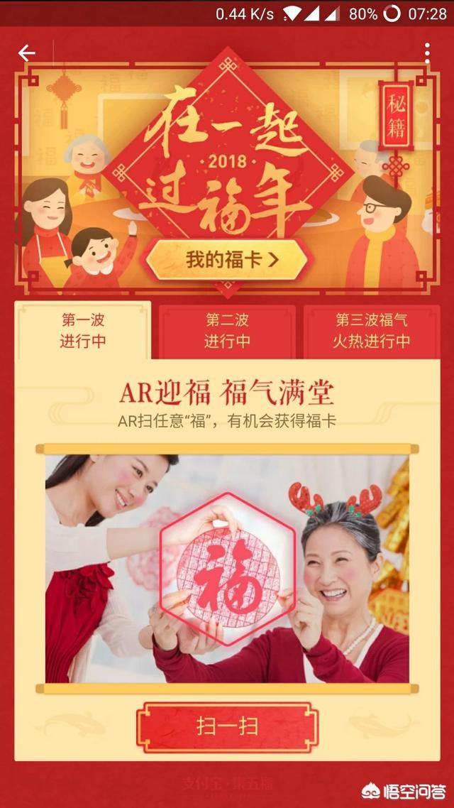2月6日开始,用支付宝里面的AR扫福字就可以得到福卡,具体是将手机对准任意福字扫一扫就有可能获得福卡,这也是往年的老玩法。