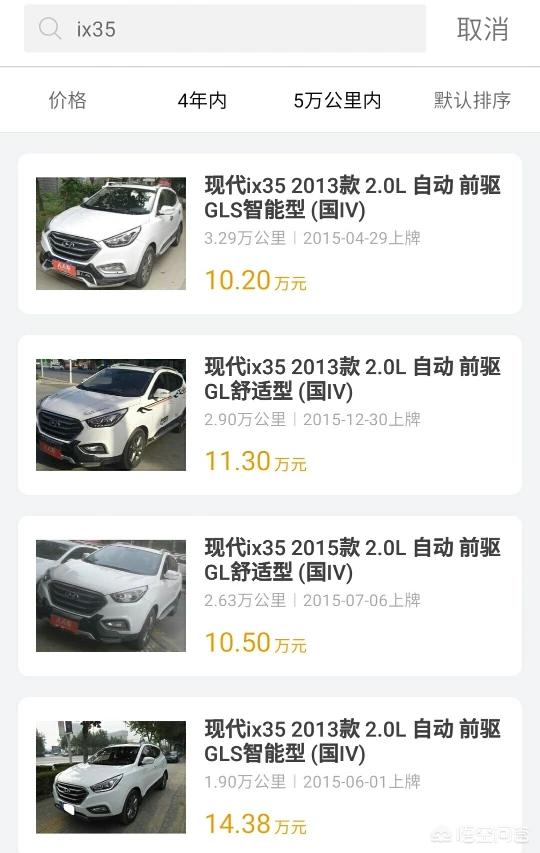 目前2014年的ix35二手车价格在10万左右,也不算贵,但是要分清是国四还是国五的。