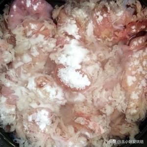 2、均匀的撒上食用碱面,然后好好揉洗…