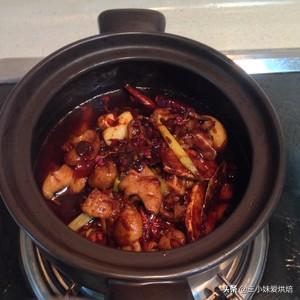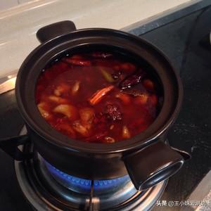 接下来再拿来炒锅锅中倒入食用油小火烧热把干辣椒、花椒适量、和切好的大葱段、生姜片倒进炒锅里翻炒出香味再倒入豆瓣酱适量、甜面酱适量翻炒炒出红油以后我们接着再倒入适量清水盖锅盖大火煮等锅中煮开后我们再打开锅盖把泡椒适量、红辣椒段倒入锅中煮一会我们再接着把汤锅里面我们放入的所有调料捞出来倒掉关火备用。第三步我们再拿来一个砂锅锅中倒入白砂糖适量、食用油适量翻炒融化掉融化接着再把切好备用的肥肠段倒入砂锅接着再倒入香醋适量翻炒一会去味然后我们再把汤锅里面的汤倒入砂锅里面接着再倒入鸡精适量、生抽适量、食用盐适量、五香粉适量翻炒开盖上砂锅锅盖小火慢慢的炖1个小时。