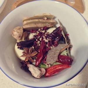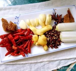 葱、姜、蒜、豆瓣酱、八角、海椒、花椒、红糖、香叶适量
