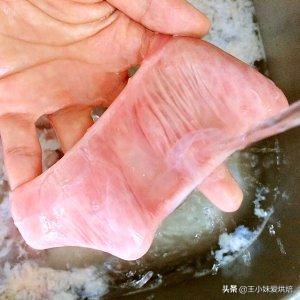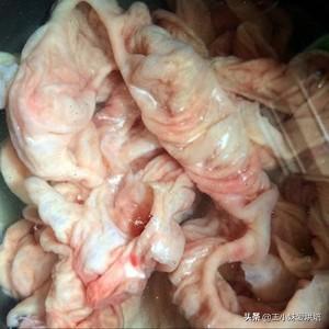 1、洗肠子:网上查了很多帖子都是把整根肠子翻过来洗,难度系数太大驾驭不了,我用剪刀分成几段,然后翻过来洗的。