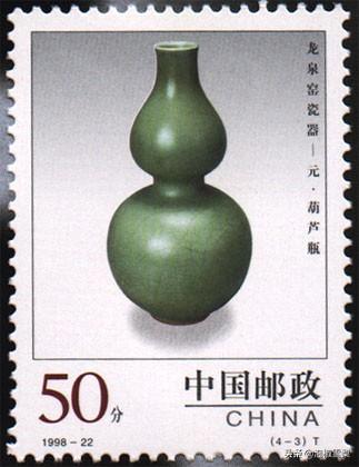 邮票1套4枚,发行量3059.9万套,邮票志号1998-22,其中第三枚为元代的葫芦瓶。如图所示。