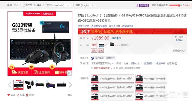 罗技发烧级专用键盘鼠标耳机 G810 g502 G903 RMB1989元