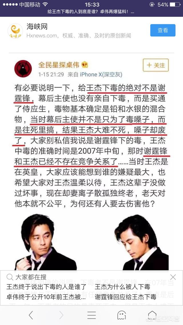 怎么王杰有被人下过毒吗?这个我还真不知道,真的,之前的我有听过他的歌,记得最清楚的就是他的《一场游戏一场梦》《伤心1999》 这两首歌,因为我很少听他的歌嘛!所以有关他的歌曲我也不是很清楚