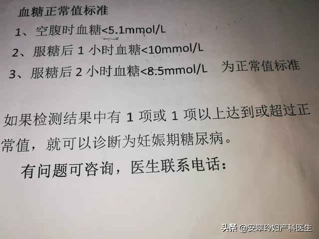 做糖筛前至少空腹8小时,检查当天不但要禁食禁饮,而且最迟不要超早上九点。检测结果1项或1项以上达到或超过正常值,就可以诊断为妊娠期糖尿病。高血糖可使胚胎发育异常或死亡,可以诱发孕妇妊娠高血压,诱发感染,酮症酸中毒,诱发念珠菌阴道炎,肾盂肾炎,无症状菌尿症,产褥感染及乳腺炎,羊水过多是非糖尿病10倍,发生巨大儿难产,剖宫产率增加,再次妊娠复发率高,巨大儿成年后发生糖尿病几率也高,胎儿生长受限发生率20%,易发生早产,早产发生率20~25%,畸形率也大大提高,对新生儿产生呼吸窘迫综合征几率增加,还会出现新生儿低血糖,严重影响新生儿生命。所以孕期一定要严格筛查和控制好血糖,对母胎都有重要意义,一项达到了诊断标准就可以诊断妊娠期糖尿病。饮食控制淀粉类食物减量,管住嘴,迈开腿,定期检查血糖,控制标准是餐后两个小时血糖6.7mmol/l