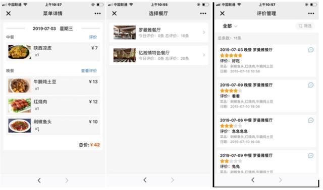 就餐人员可实时针对就餐菜品进行评价反馈,餐厅管理人员可实时查看对菜品评价统计,促进改善