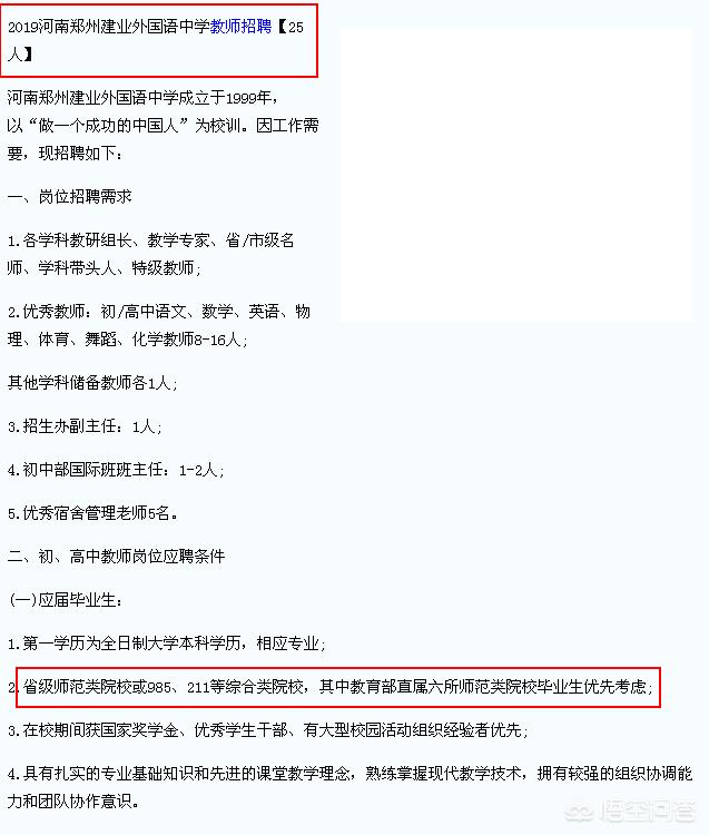 郑州建业外国语,招聘要求省级师范院校,985,211综合院校或者是教育部六所。