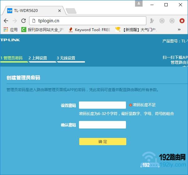 在电脑的浏览器中输入:路由器设置网址,打开设置页面——>根据页面提示,给路由器设置一个:登录密码(管理员密码)。