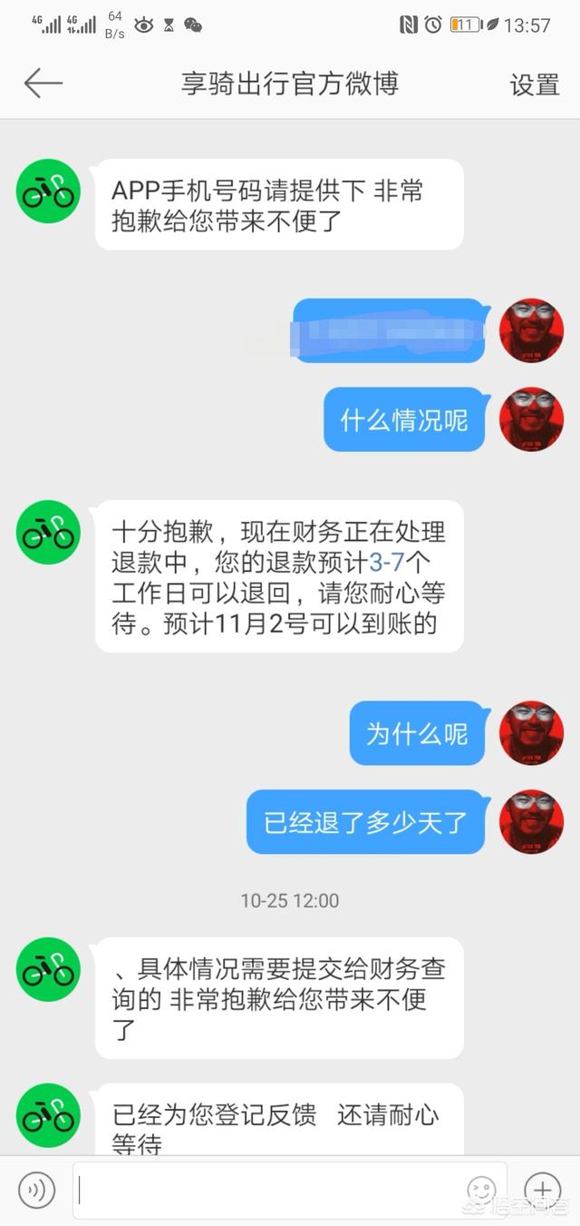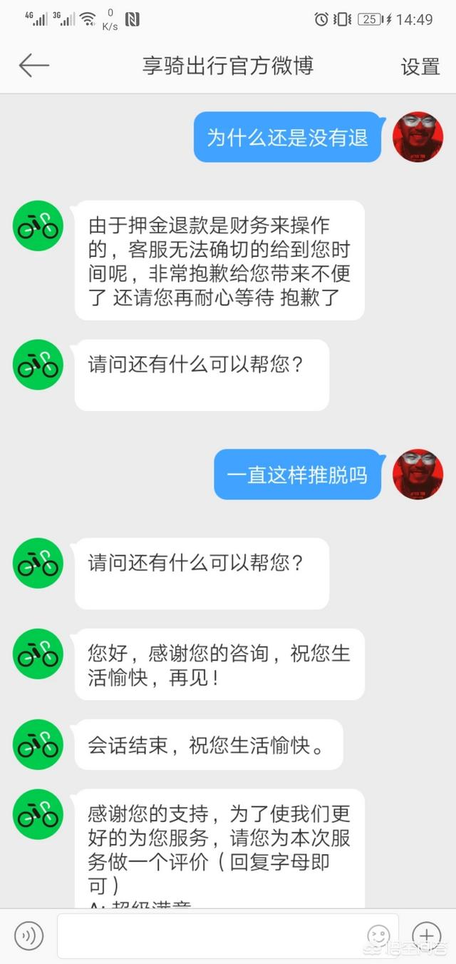 享骑电动车找各种理由不退押金,还在享骑出行吧把我的ID封了~2018年9月申请的退款,截至到现在打021-12315好多次问答是后期有人会跟您联系,呵呵~可到今天2019年2月23号了,无语~都是骗!!!这是去年11月发布滴,今天又编辑重新发布一次!