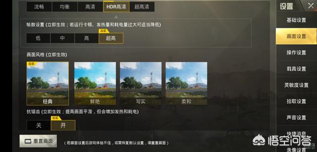刺激战场最高运行HDR高清画质+高帧率模式 第一个测试的游戏当然是时下最火,我最拿手的《绝地求生:刺激战场》了。画质选择最高的HDR高清模式,帧数选择最高,要玩就玩最佳体验。