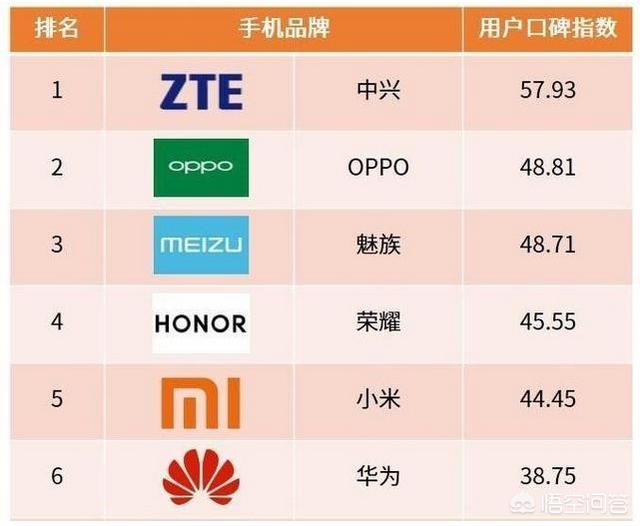 国内手机用户口碑最好的是中兴,魅族排名第三,华为仅排名第六!这可能中兴被黑的最惨得一次了。