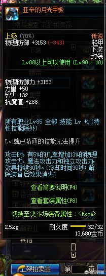裤子90级轻甲百分之13三攻,和85级技能加1
