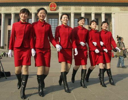 笑脸望百花盛开。