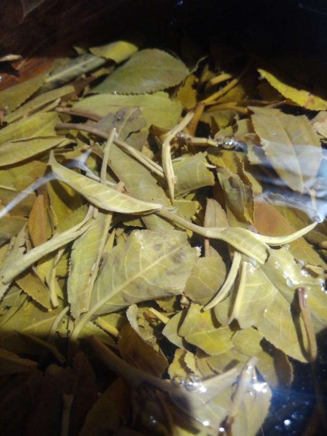 比如图片的叶底,因为是散茶容易整理,很直观看出用料的芽叶、梗,厚薄韧性,叶脉,革质感等等,可以直观看到摊凉及时,炒制锅温合适,时间到位,揉捻略微用力梗略破损,在确保原料工艺到位的情况下,后期的储存转化是有很不错的期待性。