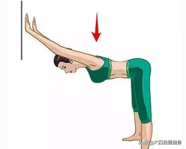 为了完成直体标准倒立,则必须注意肩角的问题,也就是上臂与躯干的夹角,当这个角度小于180度时,向后的重心就会利用弯曲腰部调整,这就是问题出现的原因。只有耸肩向上推手臂,使肩角达到180度,核心配合绷紧发力,身体自然就是直体标准姿态了。