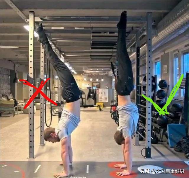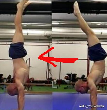 手倒立时腰部弯曲是因为肩角不平而代偿,只要注意这个要点即可马上解决问题!