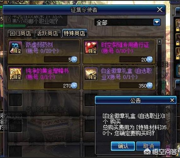第一,活动获得,例如征集令回归活动!这里有个坑就是获得的白金徽章礼盒要看脸,因为是随机开的,通常开的都是本职业系的其他专职职业;