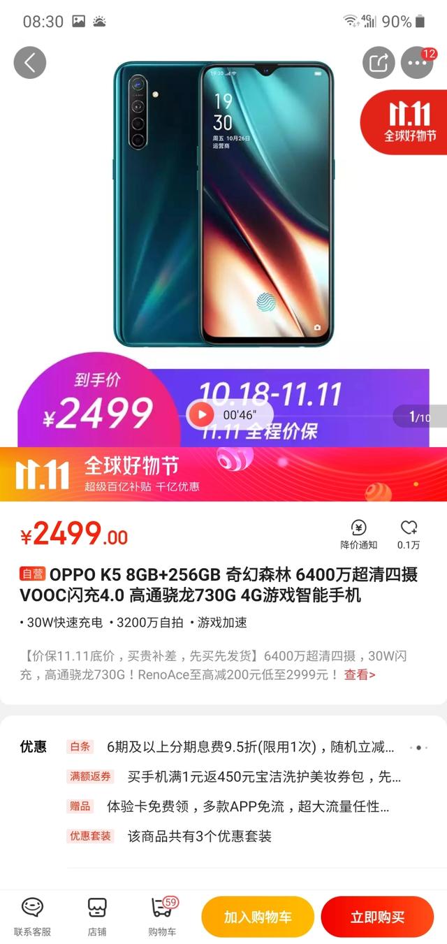 oppok5 : 三星A屏1080p水滴屏+高通骁龙730(2.2GHz)+colorOS 后置摄像头:6400万像素主摄镜头+800万像素超广角镜头+200万像素微距镜头+200万像素人像镜头,前置3200万。