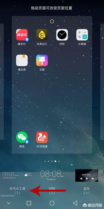 华为荣耀手机桌面怎么添加时间天气小工具?