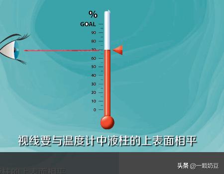会看:视线要与温度计内的液体(最中间处)相平。