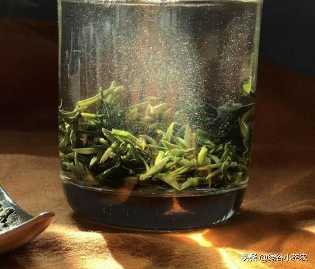 而龙井茶,芽头要相对小一点,偏扁,颜色偏黄绿。除了春茶时候,做的名优茶,外形上比较难以分辨外,其他时候的茶还是很好分辨的。泡开看,容易判断,龙井茶的叶片纹路更加明显。