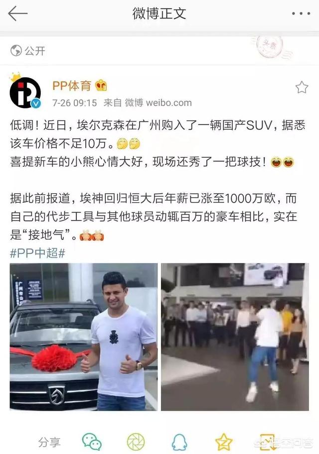 埃尔克森入乡随俗,虽然身价超过1000万,却仍然省吃俭用,刚刚喜提一辆宝骏530的SUV用来代步。对比国内的那些大牌球员,埃尔克森是不是更有传统中国球员的风范呢?