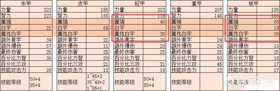 而在国服中唯一不存在稀释问题的伤害就是技能攻击力(力量智力不输于直接伤害,等同于技能等级)所以我个人还是更倾向于你升级自己的本名甲。虽然重甲的缺点在于没有技能附加没有属强也没有属性白字等伤害,但是重甲的百分比力量/智力。百分比三攻以及技能攻击力都是所有护甲中最高的。