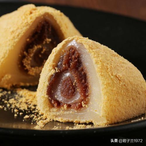 以前我们小时候吃到的是用大黄米,用水浆好之后,磨成粉做的。外面裹上厚厚的豆面,中间夹上豆面和白糖或红糖活的馅,颜色为金黄色。再后来吃到的糯米,也称之为江米,或粘大米,用水浆过之后磨成粉,只是馅料品种增加太多了,有豆沙馅,紫暑馅,五仁馅,哈蜜瓜馅,枣泥馅,紫苏馅,香芋馅等等。