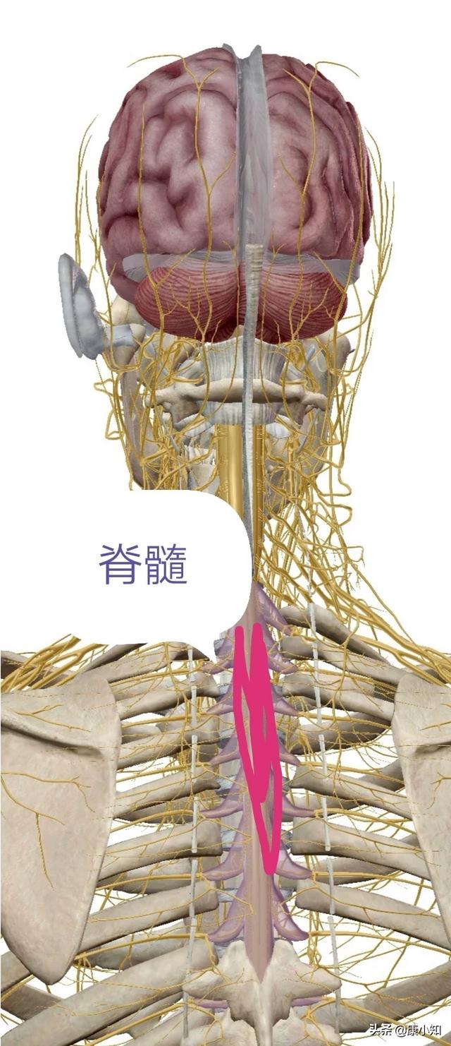 脊髓是中枢神经系统的重要组成部分,是脑干向下延伸的部分,上端于枕骨大孔水平于延髓相接,下端至第一腰椎下缘形成脊髓圆锥。