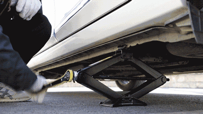 第五步:用千斤顶把车抬起