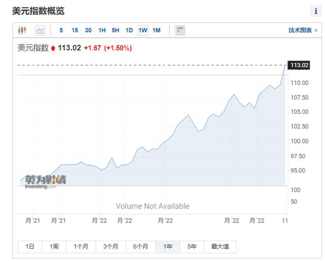 其次,#美元继续上涨# #油价大跌# #金价继续下跌# 国际金价跌破1645、美元指数(DXY)涨破113;同时,欧元兑美元跌破0.98,创2002年以来的最低水平、英镑兑美元汇率跌至37年来的最低水平、原油期货继续下挫,石油股普遍下跌。