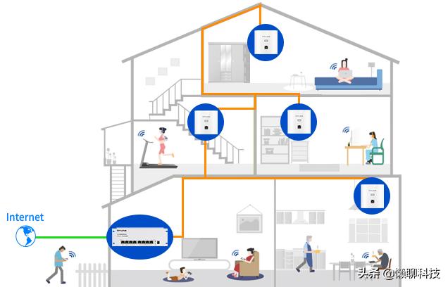 简单的来说,就是每层放置一个路由器,路由器和路由器之间通过网线或者WIFI的方式进行连接,并且同时每个路由器发射出相应的无线名称来实现无线信号的扩展覆盖。这种方案虽然价格比较便宜,但是体验相对来说比较差,有时候也并不能实现信号无死角的覆盖,并且不能实现用户无感知的无缝漫游体验。