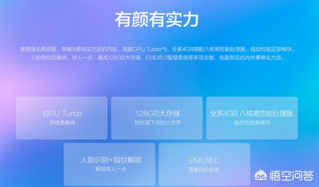 谢谢邀请,荣耀这款手机的突出特点就是有GPU turbo*5的游戏处理器,对于游戏爱好玩家来说是一个福利,其次搭载的就是Hisilicon Kirin 659处理器配合华为自己的EMUI8.0的系统,有两个版本4+64或者4+128两个版本。