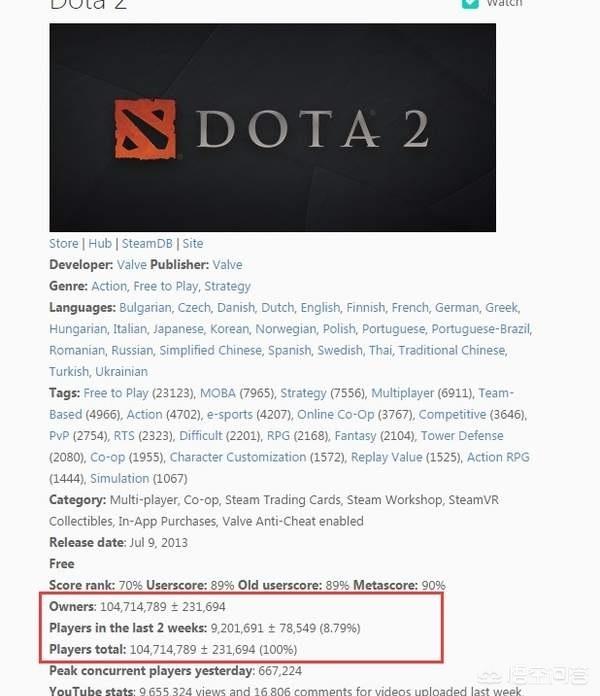 根据SteamSpy最新数据显示,《Dota2》的玩家数量已经突破1亿。