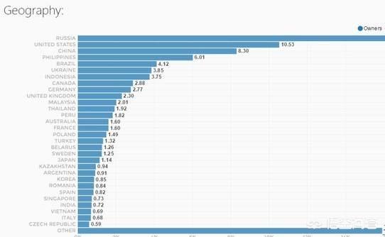 单看SteamSpy的数据统计,按照区域划分,俄罗斯玩家数目占比高达16.41%位列第一。第二名则是美国,占比10.53%,第三名则是中国,占比8.30%。