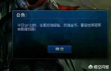 第一句:今晚19时到22时,全服双倍经验,双倍金币,喜迎世界冠军we凯旋归国!