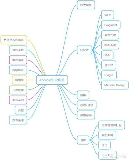 首先,要了解Android是基于Linux系统的,且依赖于Java语言。我们来看下Android的知识图谱。可以看到,想到做好Android,需要掌握很多东西,如果是应届毕业生,也不可能一下掌握这么全面,可以先抓住重点,从容应对面试。当钛,要对Android的整体架构有一个清晰的认识,这样,在开发时的逻辑比较清晰,不存在它认识你,你不认识它,哈哈….