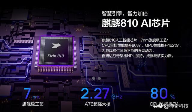 华为9s搭载的为12 nm制程的麒麟710处理器。显然810性能强于710。