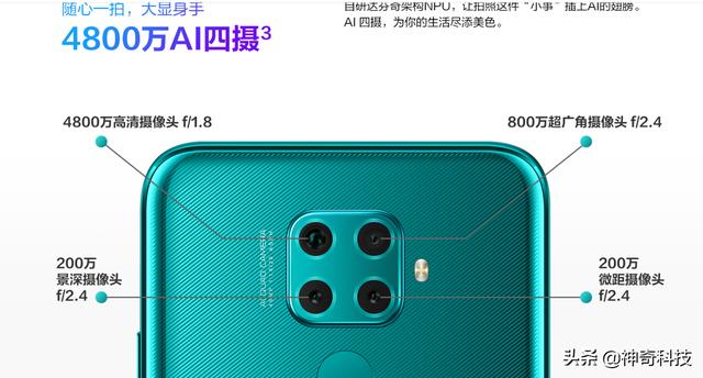 华为nova 5z搭载4800万+800万+200万+200 万像素的后置四摄,3200万前置摄像头。