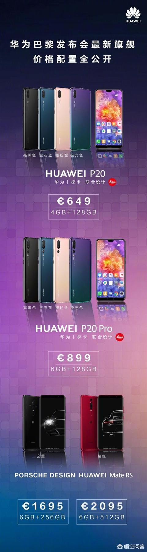 - 华为P20 Pro(6GB+128GB)的定价899欧元(约合6995元人民币)。
